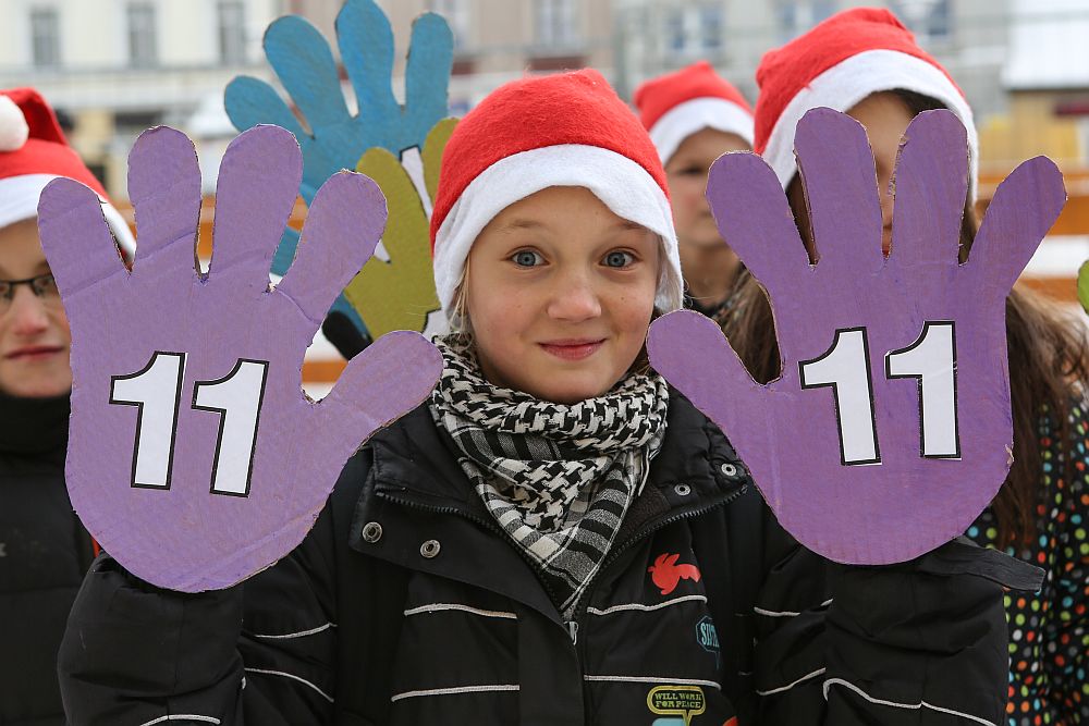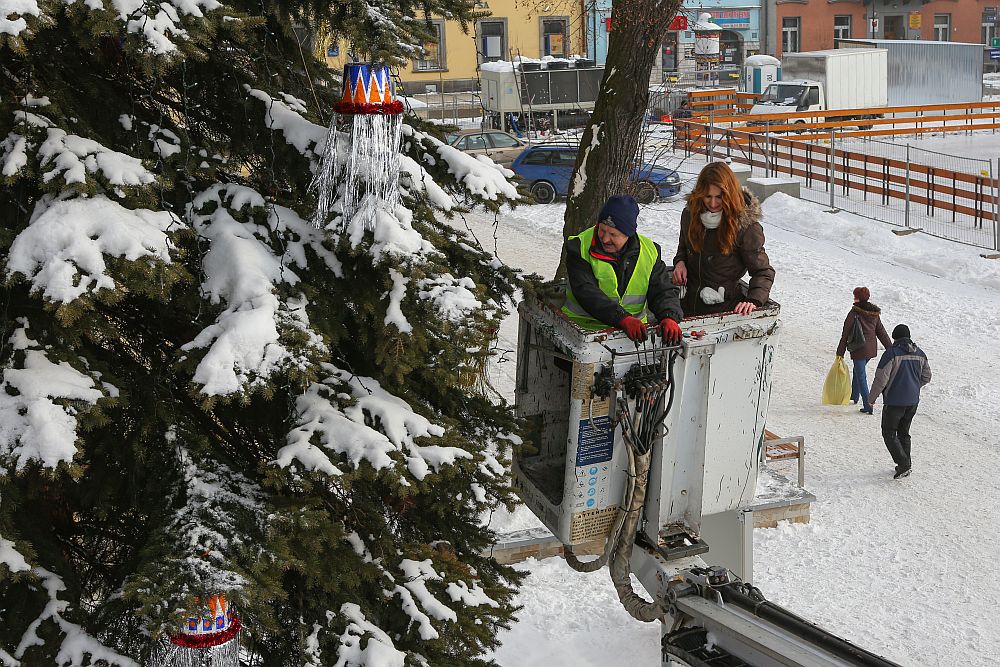 W tym roku dzieci ze Szkoły Podstawowej nr 11 ubrały choinkę miejksą która rośnie obok Ratusza w Nowym Targu.