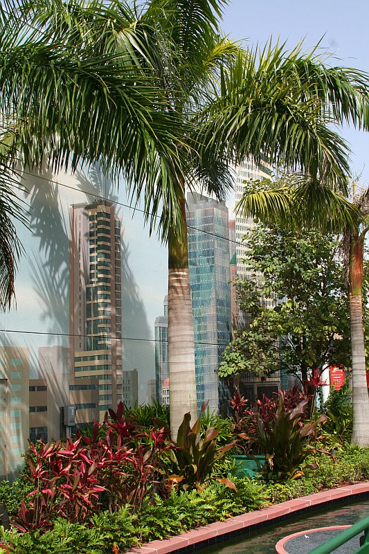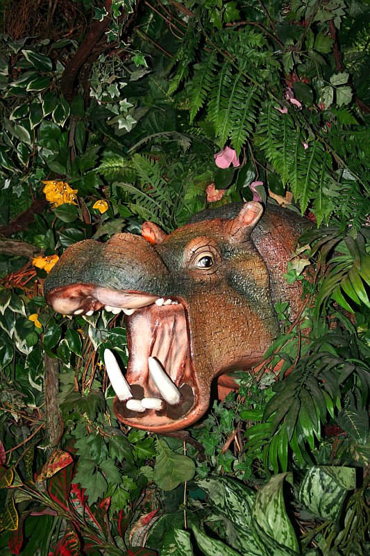Pierwszy dzień na Florydzie to totalne zmęczenie po przeszło 24h podróży, ale warto było się trochę pomęczyć. Zaczęliśmy delikatnie - 4h maratonem po sklepach i obiadem w restauracji wzorowanej na dżunglę. Były ruszające się małpy, słonie, hipopotamy, papugi. W ogromnych akwariach pływały morskie ryby, a z sufitu padał deszcz z imitowaną burzą, gdzie sufit rozświetlały błyski grzmotów...Później jeszcze wycieczka na molo...