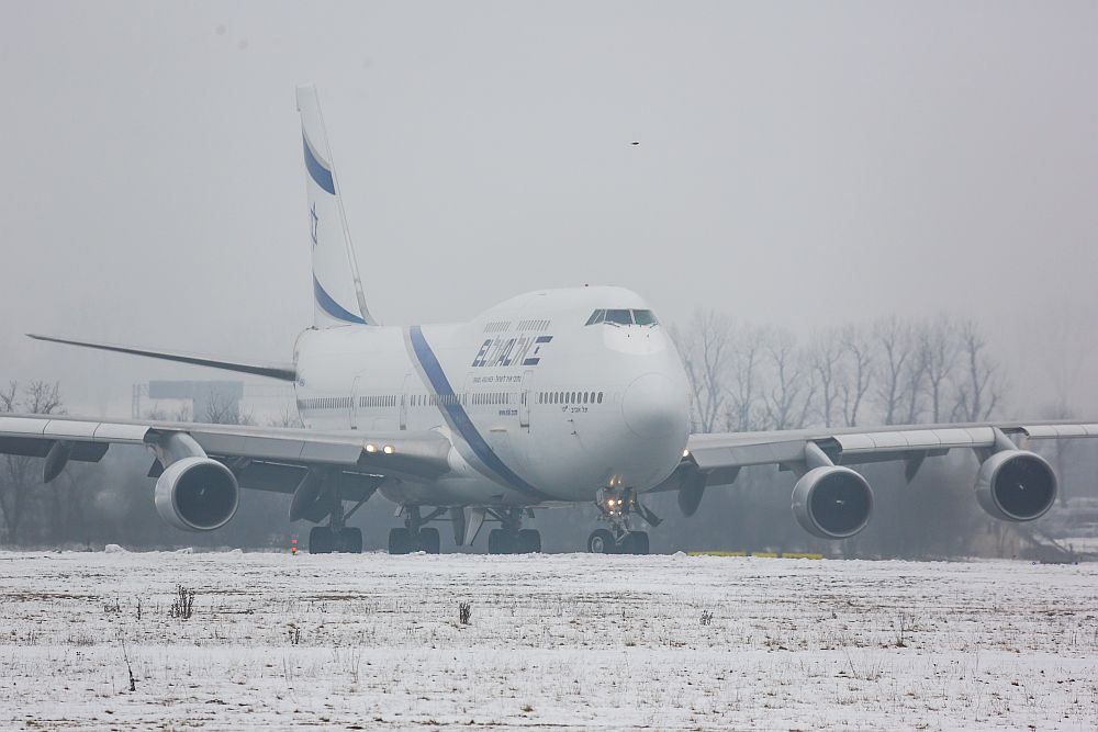 Na lotnisku w Krakowie wylądowała dzisiaj jeden z największych pasażerskich samolotów świata - Boeing 747-400 Izraelskich linii lotniczych EL-AL. Niestety przylot samolotu popsuła pogoda. Cały dzień na terenie lotniska utrzymywała się mgła i niska podstawa chmur.