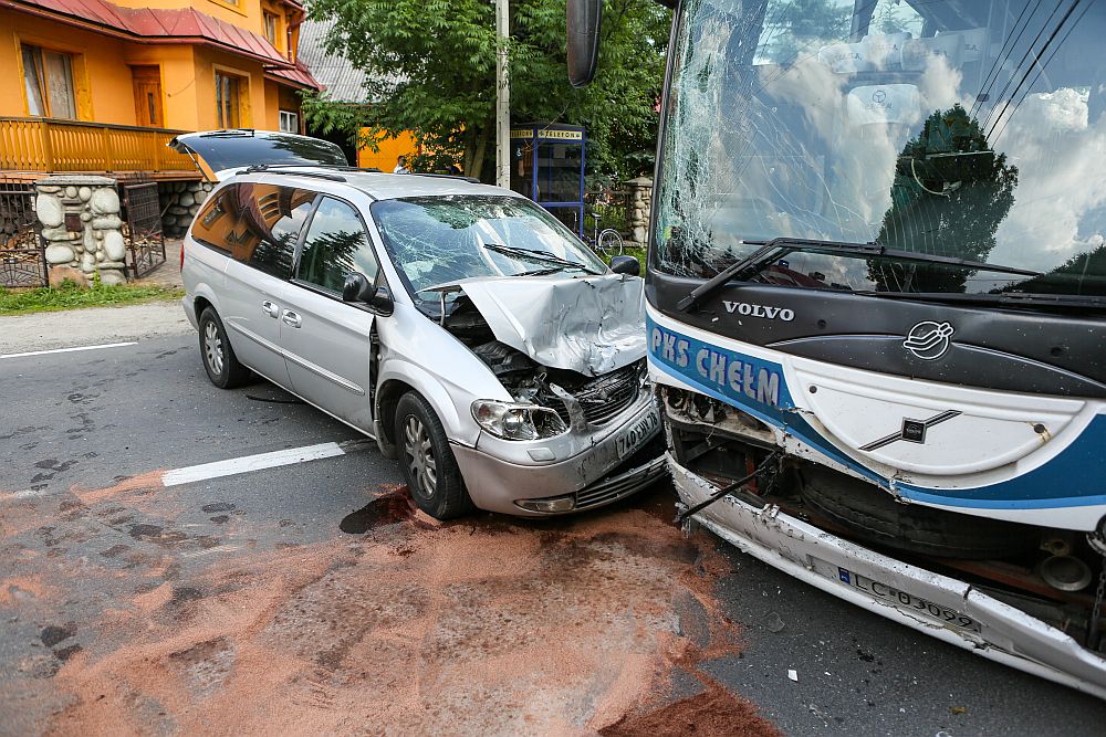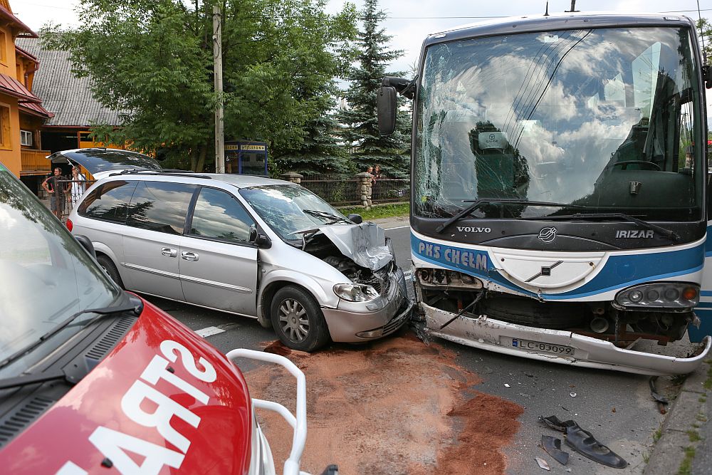 W Poroninie, na drodze w kierunku Bukowiny Tatrzańskiej samochód osobowy na zagranicznych numerach rejestracyjnych zderzył się czołowo z autobusem PKS Chełm, w którym jechały dzieci.