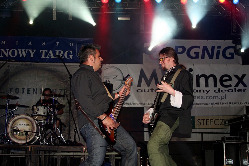 Dzień II podzieliłem na 2 części ze względu na ilość materiału. Druga część to koncerty 3 zespołów. Jako pierwsze wystąpiły LESZCZE - zespół bardzo dobrze znany nowotarżanom chociażby z Juwanalii na których wystąpili w tym roku, drugie było QUEENS czyli trzy rozśpiewane i tańczące dziewczyny.Na sam koniec i jak dla mnie najlepiej zagrał zespół TOTENTANZ - bardzo rockowa grupa z Tarnowa. Chłopaki grali własne numery porywając publiczność do zabawy....szkoda tylko, że zagrali tak krókto, ale jeszcze wszystko przed nami.