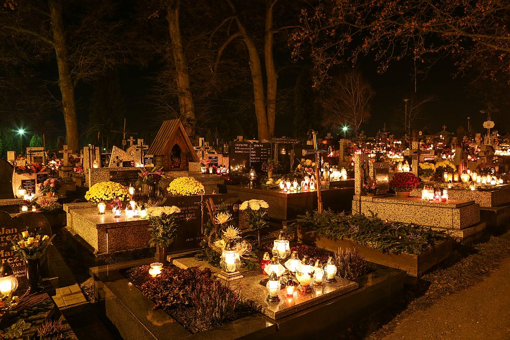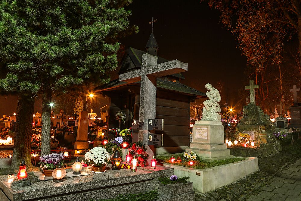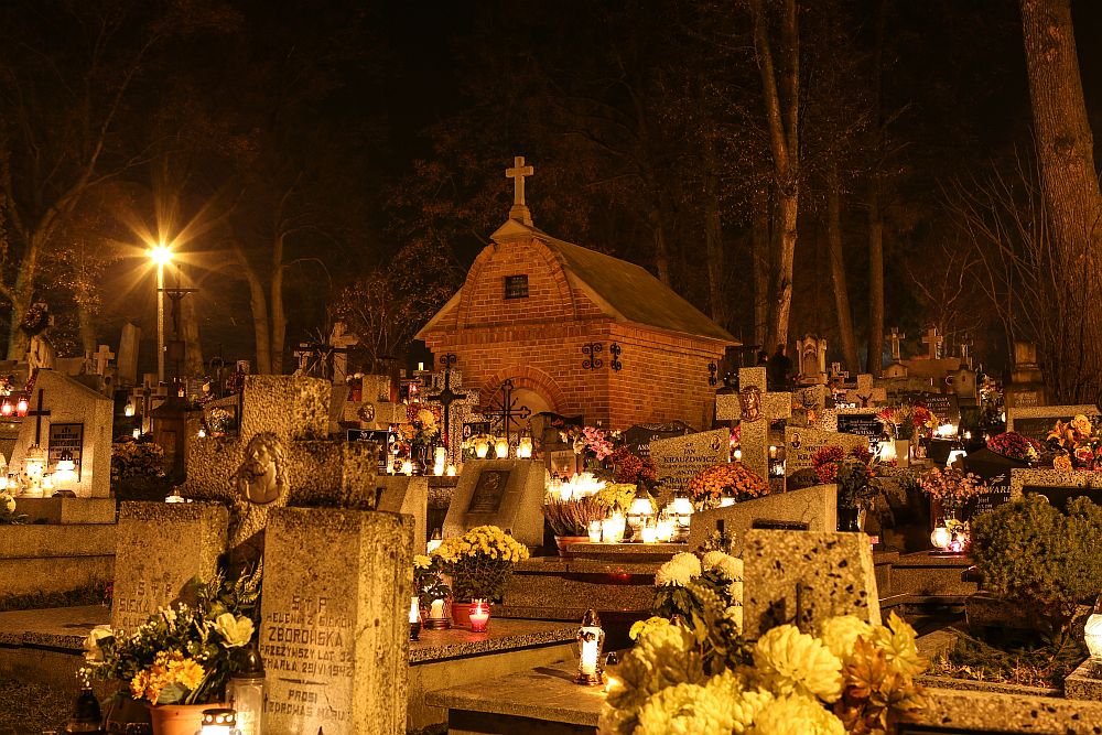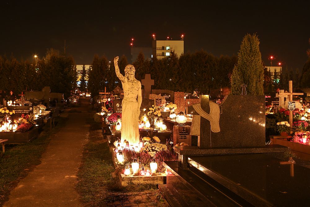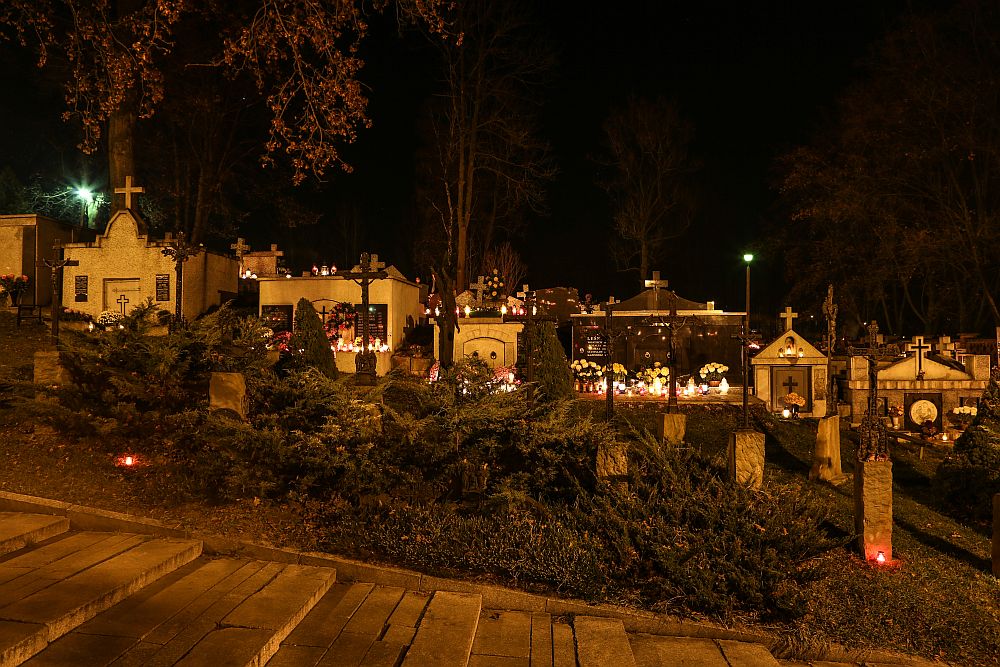 Nowotarski cmentarz w nocy