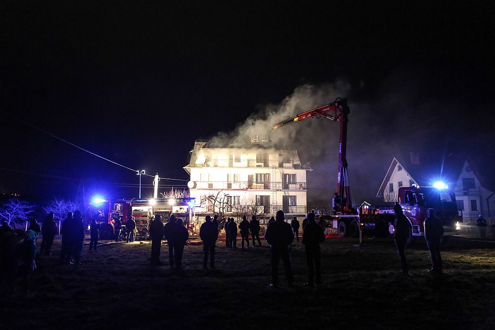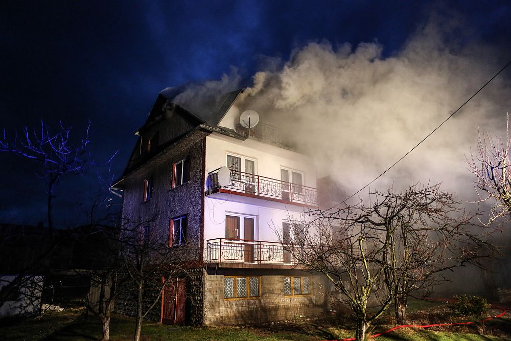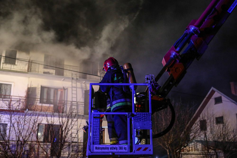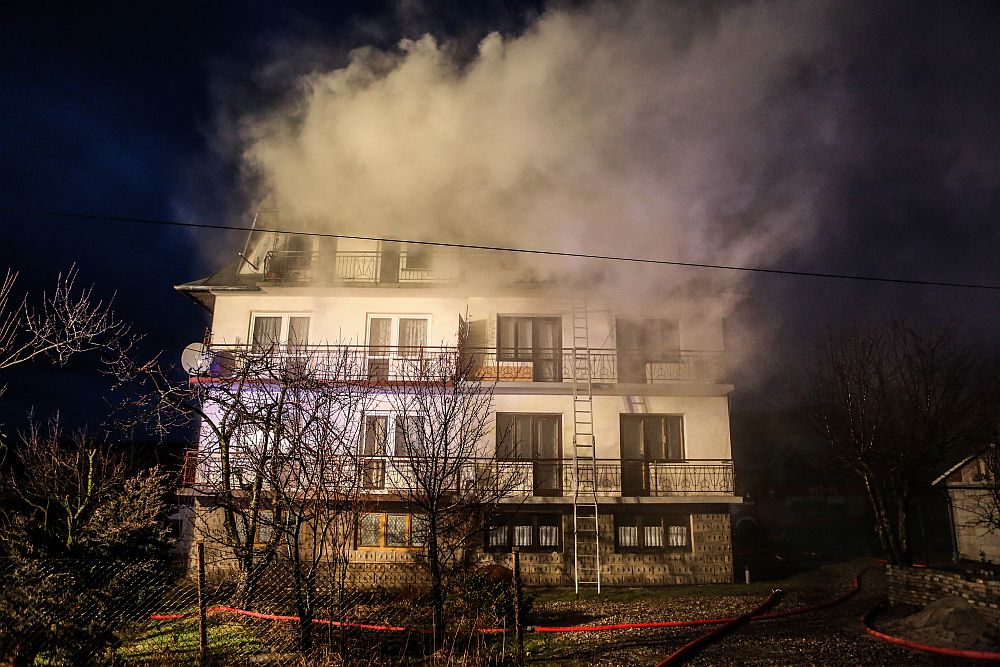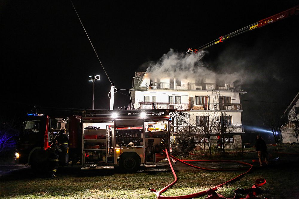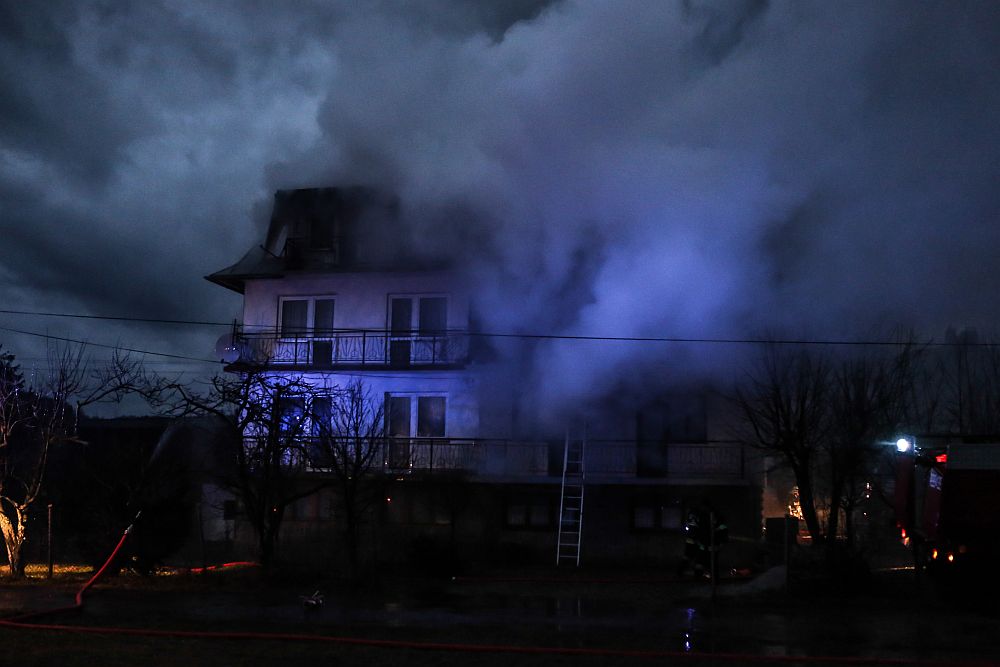 W ogniu stanął dom bliźniak. Zapaliło się poddasze budynku. Pożar gasilo strażacy z Nowego Targu i okolicznych jednostek OSP. Do akcji zadysponowano 14 jednostek.