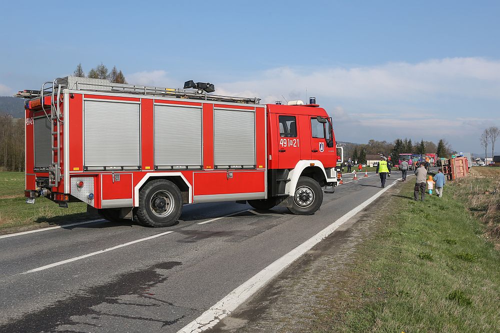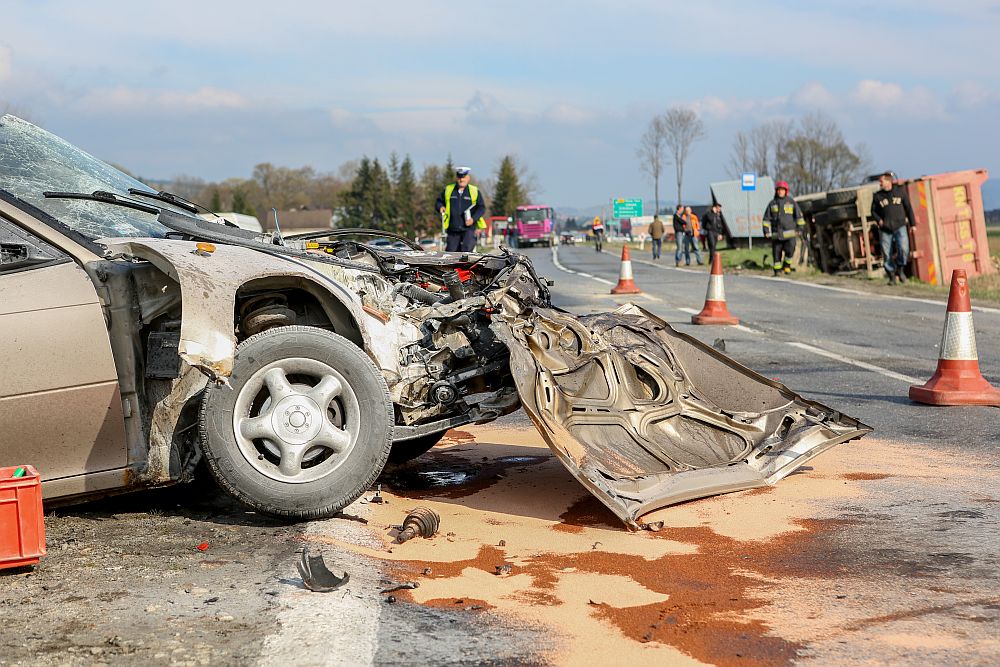 Samochód osobowy zderzył się czołowo z wywrotką wyładowaną kamieniami w Harklowej