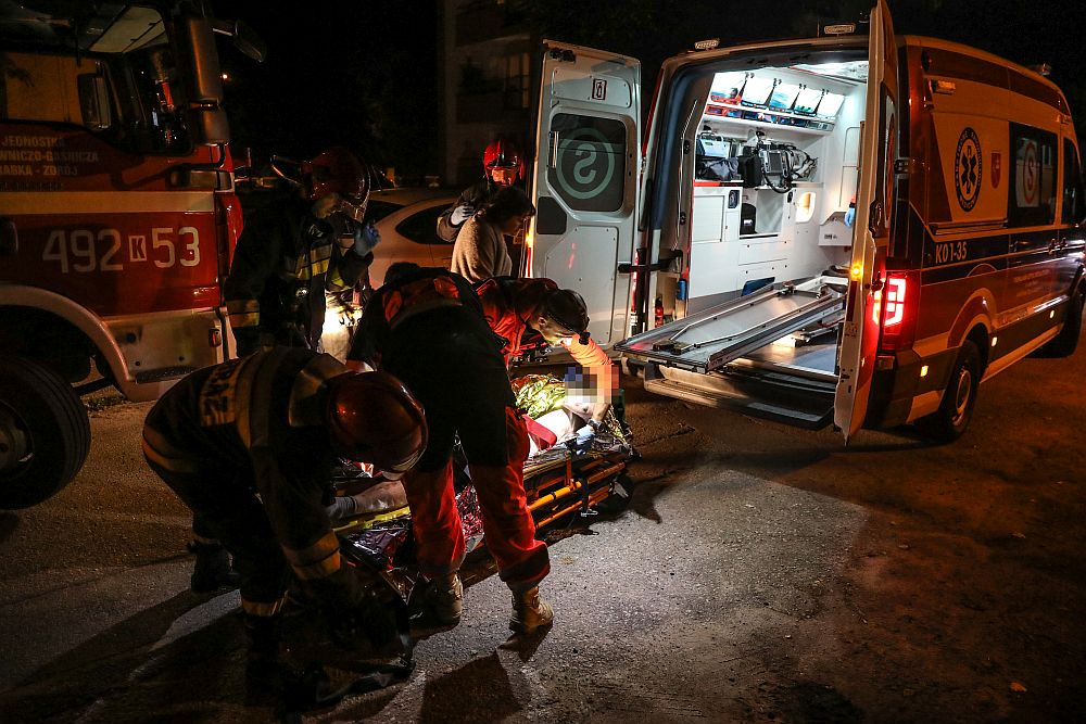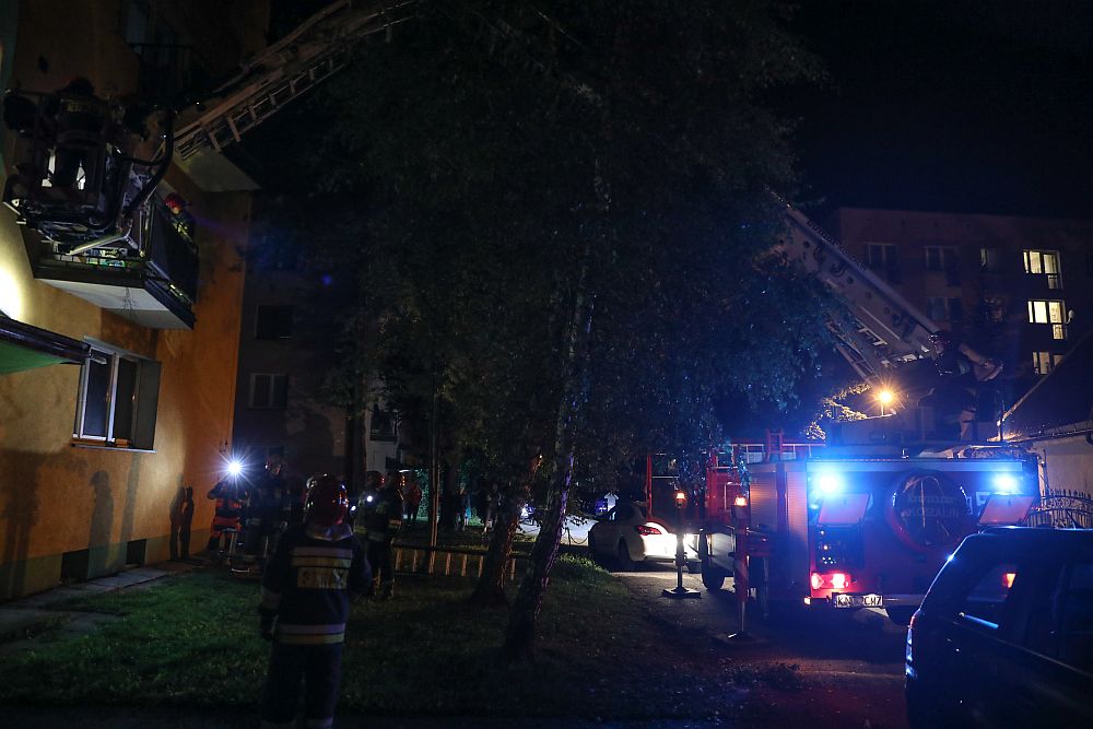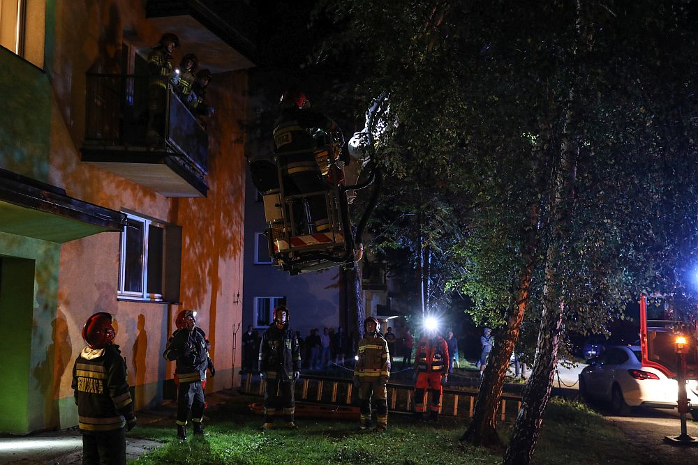 Nocna akcja policji, straży i pogotowia w bloku na Al. 1000-lecia w Nowym Targu