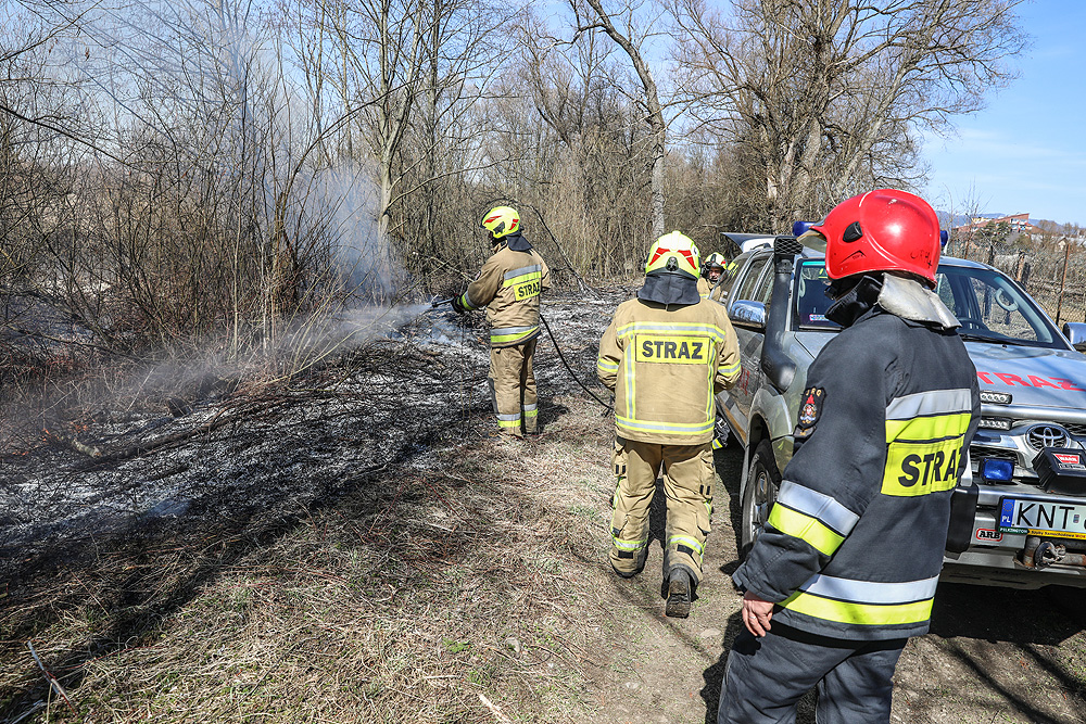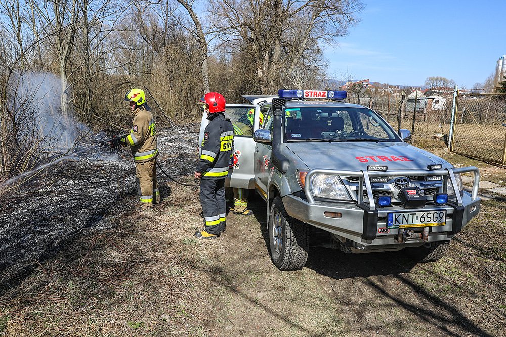Pożar trawy i krzaków w Nowym Targu