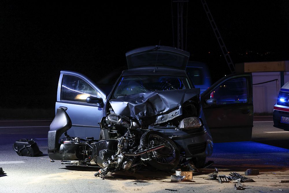 Zderzenie samochodu z motocyklem na Niwie w Nowym Targu