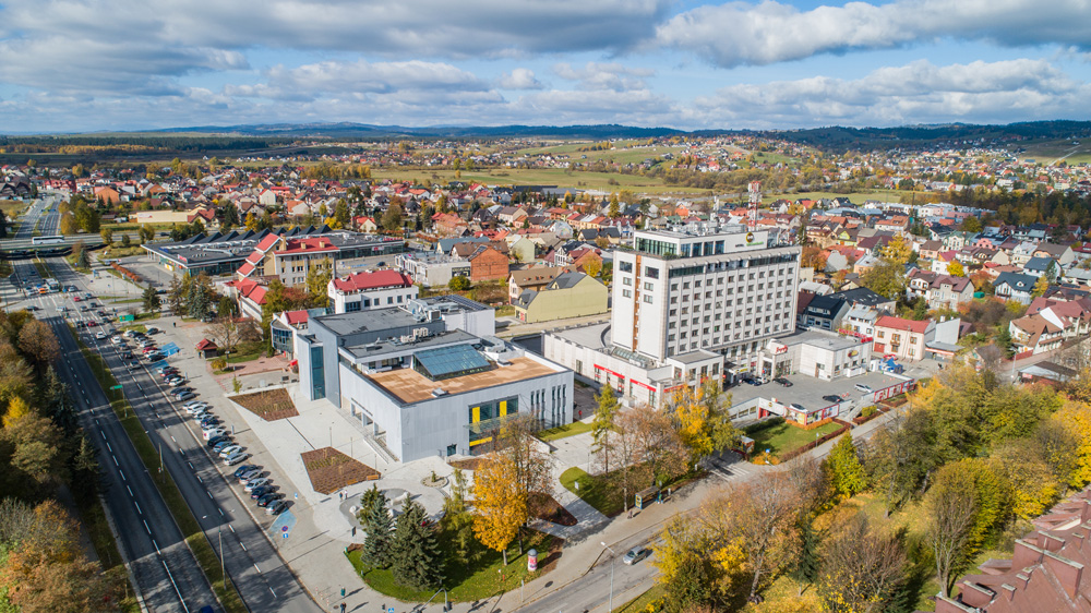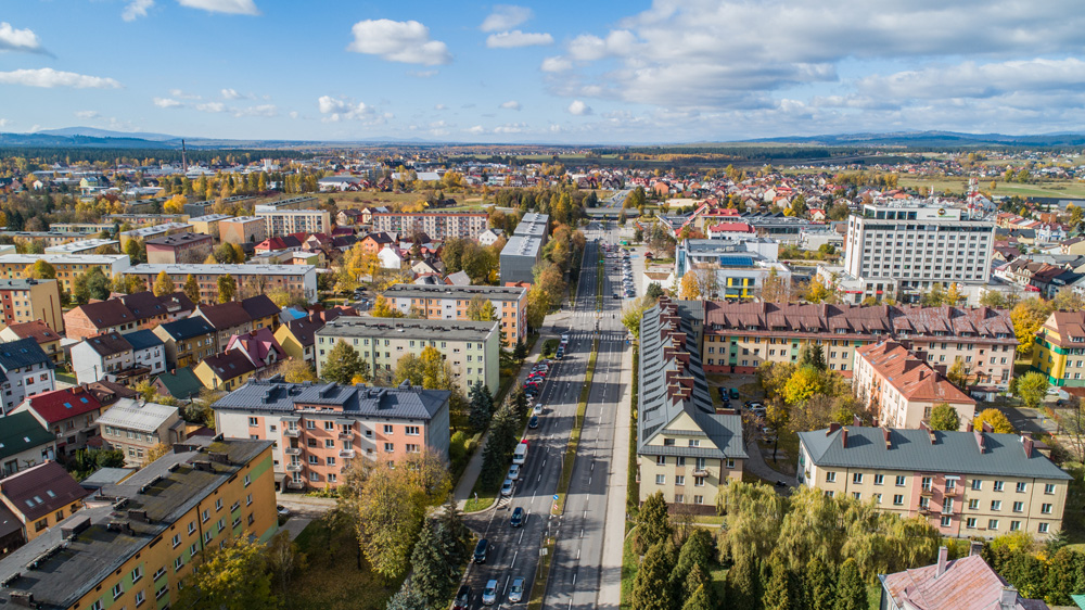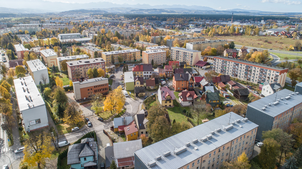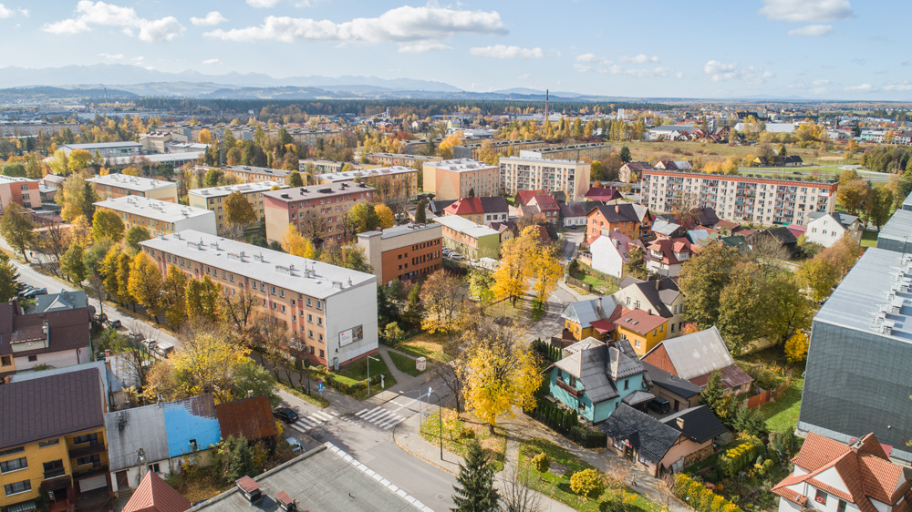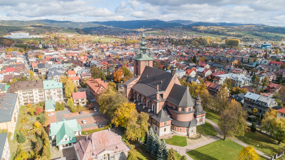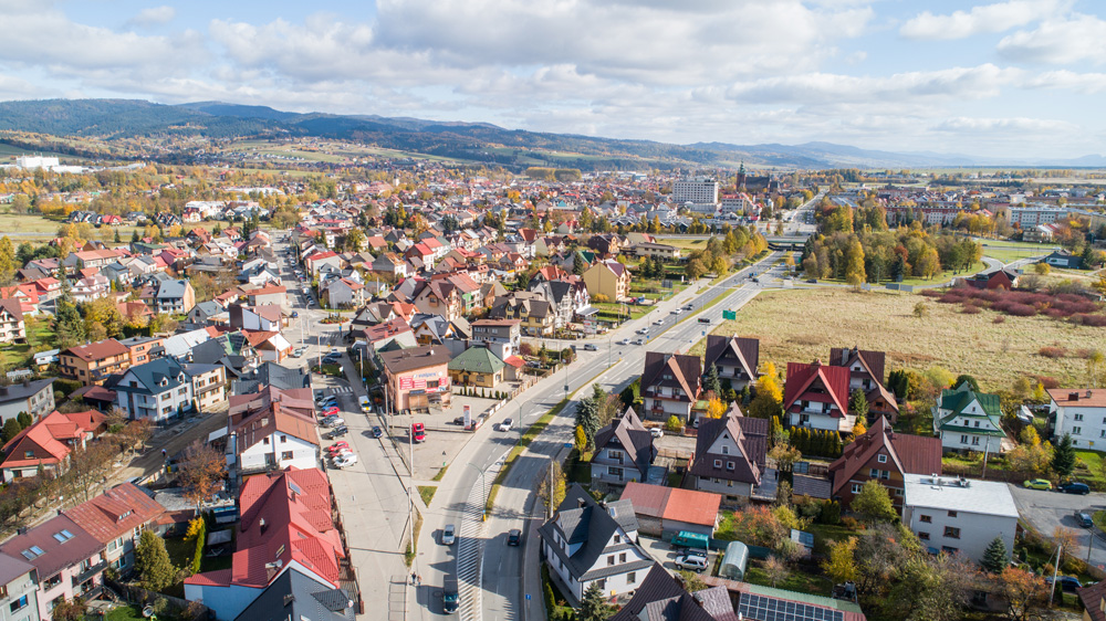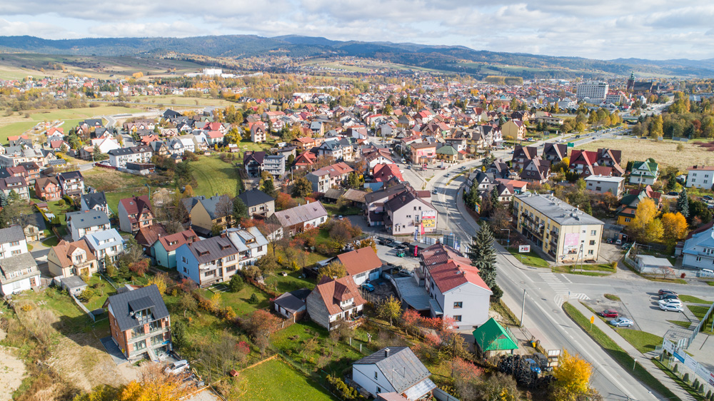 Jesienny Nowy Targ z lotu ptaka