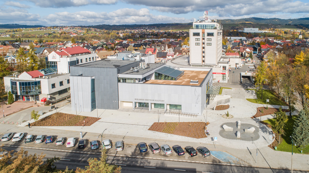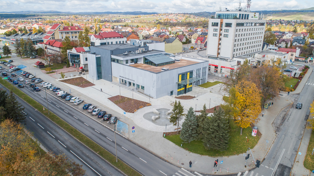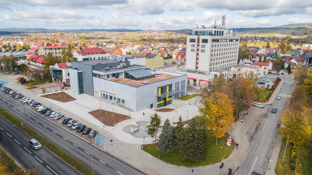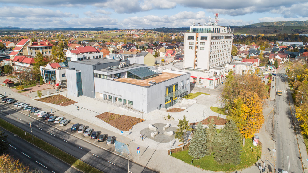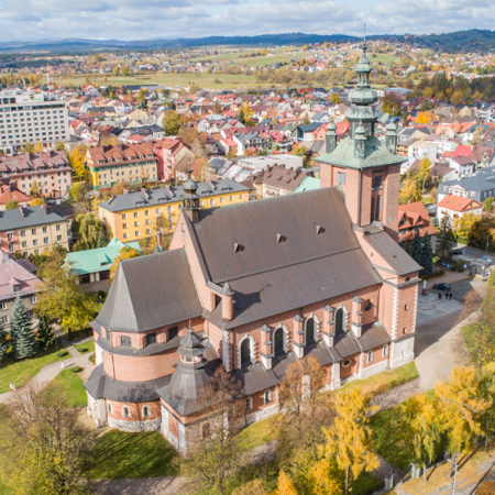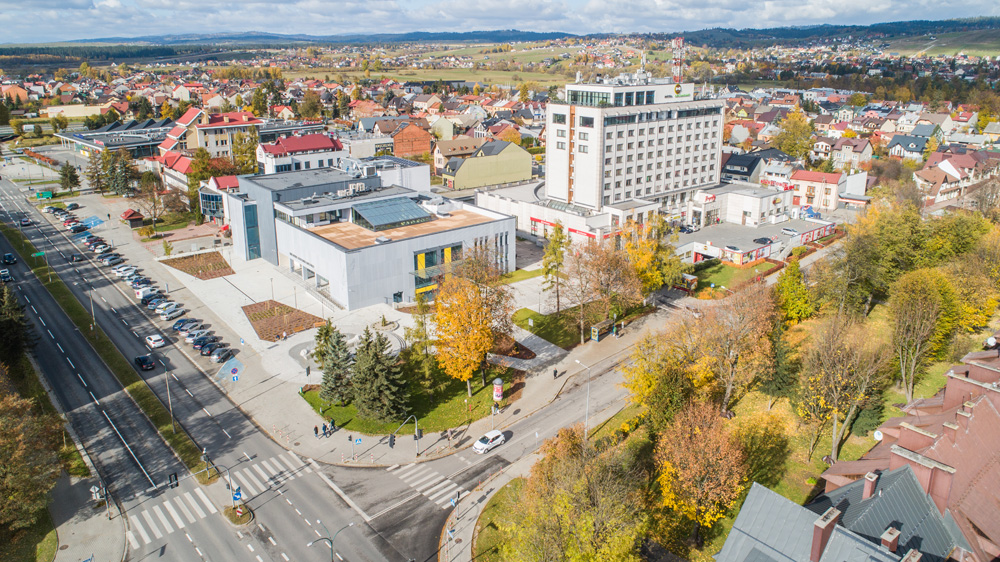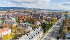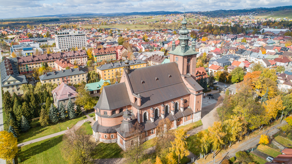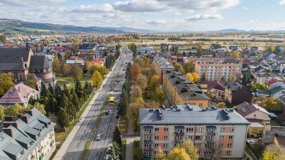 Jesienny Nowy Targ z lotu ptaka