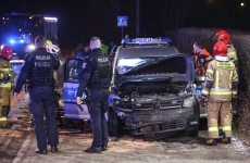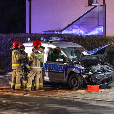 Zderzenie radiowozu i samochodu osobowego w centrum Nowego Targu