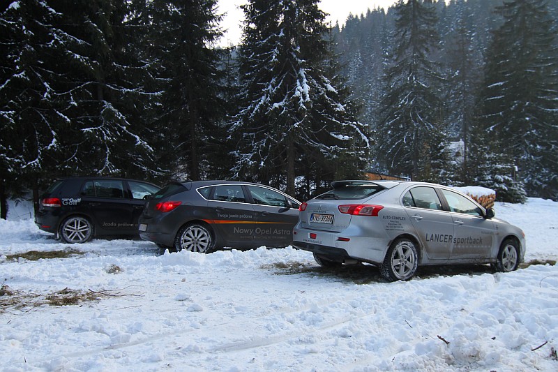 Zdjęcia najnowszych modeli Mitsubishi Lancera, Opla Astry i Volkswagena Golfa