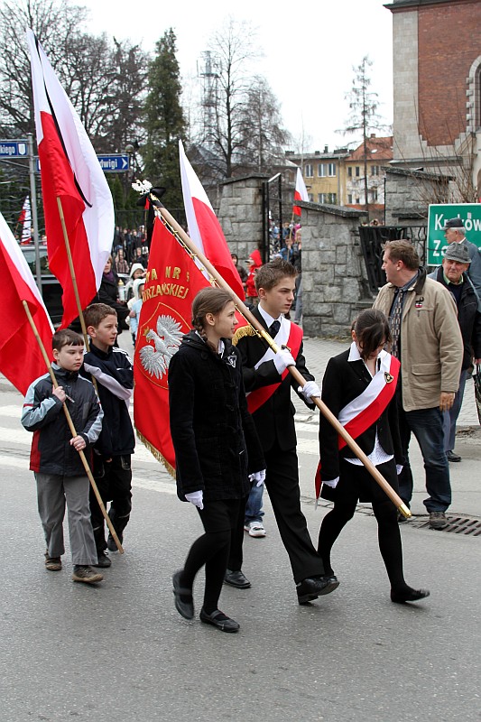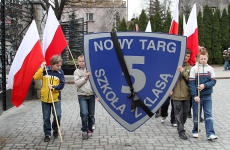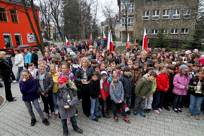 Ponad 600 uczniów Szkoły Podstawowej nr 5 przeszło dzisiaj w marszu żałobnym ulicami Nowego Targu, aby dojść pod Krzyż Ofiar Katynia i tam oddać hołd zmarłym w katastrofie lotniczej, która miała miejsce w sobote 10 kwietnia 2010r.