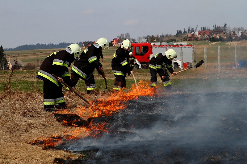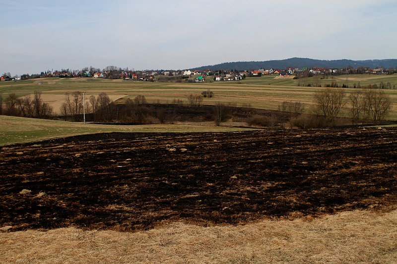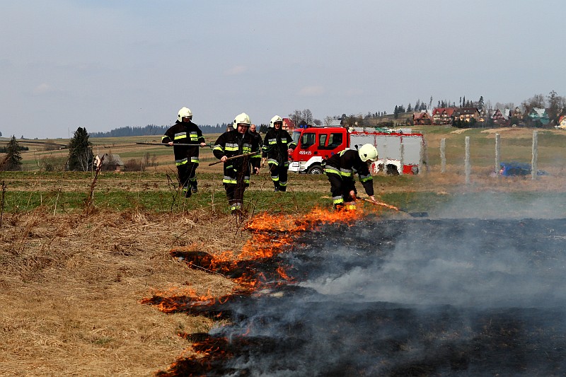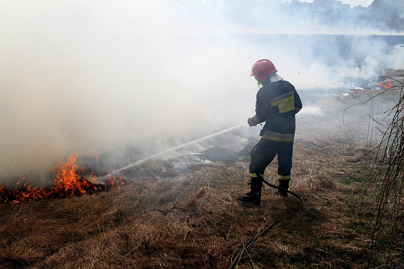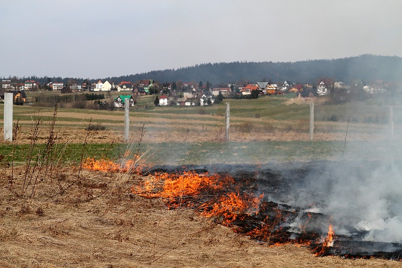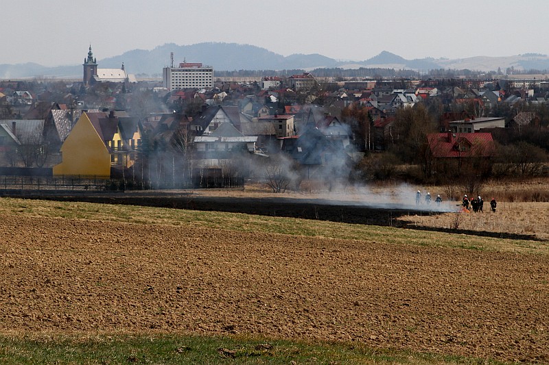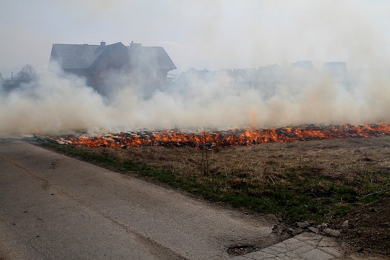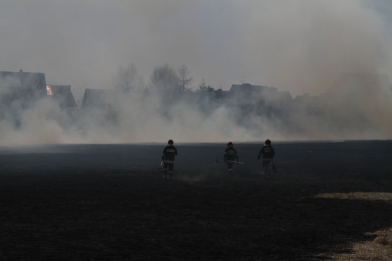 Zdjęcia z pożaru trawy na ul. Partyzantów. Tym razem było groźnie, gdyż pożar zagrażał budynkom mieszkalnym.