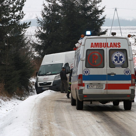 Na śliskiej drodze, przy wyjeździe z ulicy Grel w stronę Ludźmierza lub Trutego, doszło do zderzenia samochodu osobowego z busem. W wyniku wypadku obrażenia odniosła kierująca samochodem osobowym.